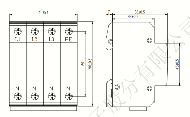Nominal discharge current-In(8/20μs)25kA(L-N);60kA(N-PE)
