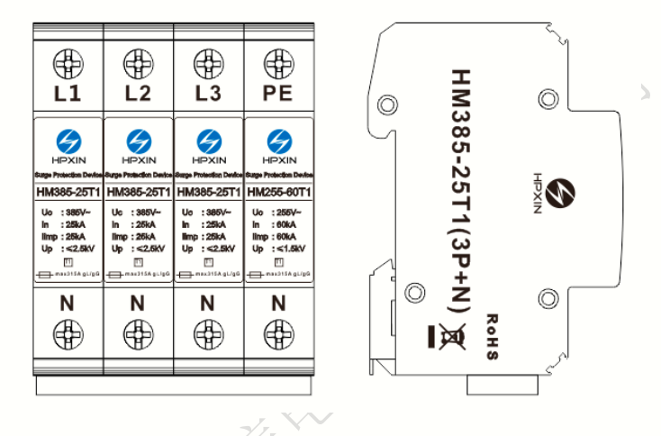 Impulse current-Iimp(10/350μs)25kA(L-N);60kA(N-PE)